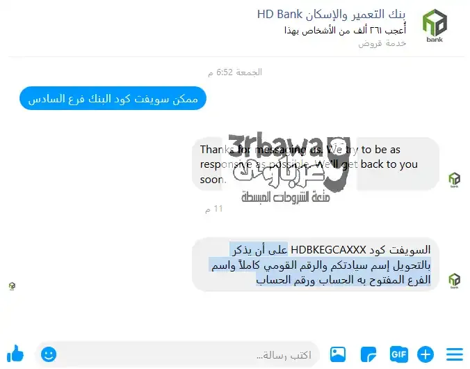 ايبان سويفت كود بنك التعمير والإسكان Hd Bank